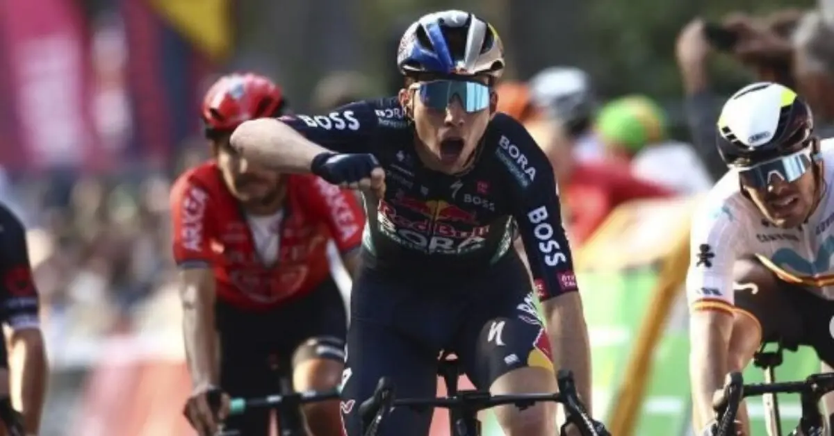Il catalano della Red Bull-BORA-Hansgrohe è il più forte sull'Alto del Castillo. I due favoriti scivolano in salita e perdono terreno dalla testa della corsa