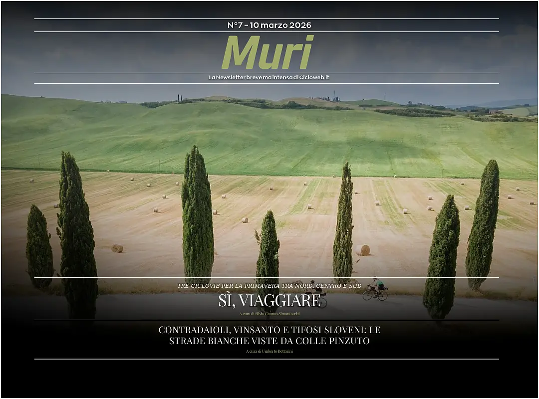 Il settimo numero della newsletter Muri è online! Con l’arrivo della primavera, abbiamo voluto raccontare due modi diversi ma complementari di vivere la stagione delle ripartenze: la festa popolare delle Strade Bianche e il desiderio di tornare a pedalare sulle strade del cicloturismo.