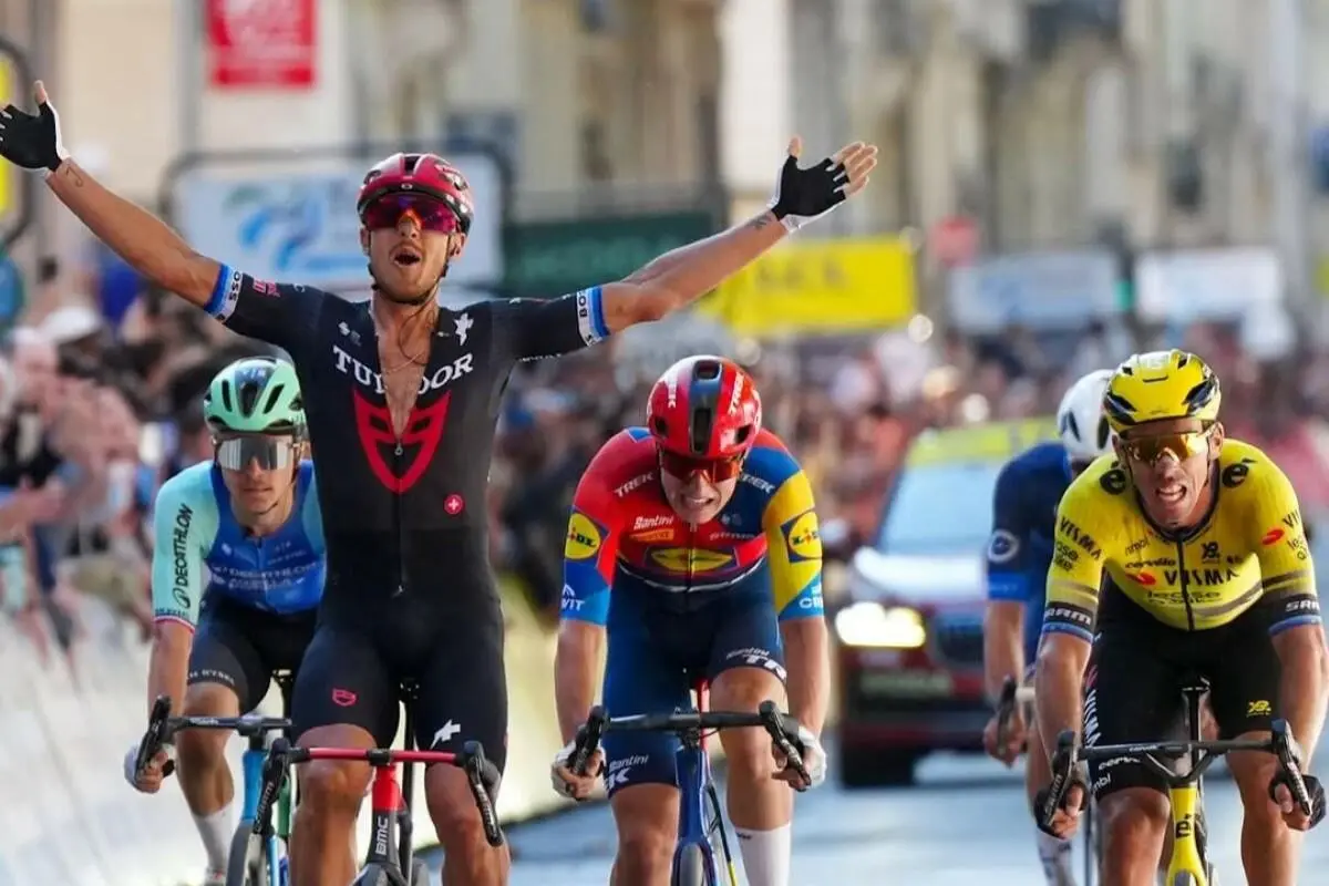 Sul rettilineo di Tours, Bissegger ha poi lanciato la volata per Lapeira, ma Trentin, con perfetto tempismo, ha rimontato e superato tutti negli ultimi cento metri, precedendo Laporte e Philipsen. Lapeira e Gruel hanno chiuso rispettivamente quarto e quinto. Decima posizione per Alessandro Covi.