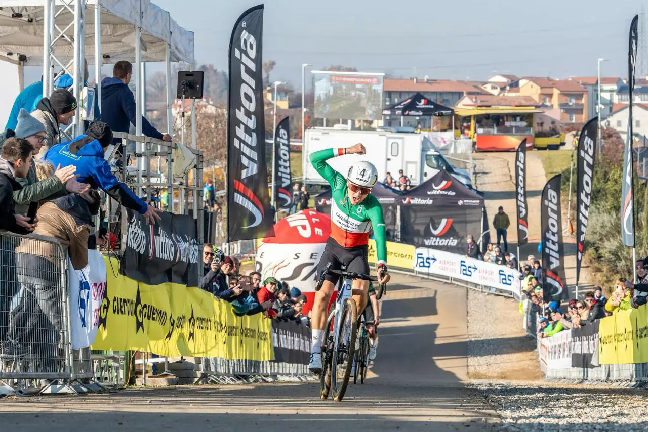 Partenza velocissima di Romain Debord (AS Bike Racing), mentre perde subito metri Gioele Bertolini (FAS Airport Services-Guerciotti). Nel corso del primo giro emerge un quintetto, formato da Samuele Scappini (Team Cingolani), Filippo Fontana, Thomas Mein (Hope Factory Racing), Debord e Federico Ceolin. Un'accelerata si Mein all'inizio del secondo giro fa sì che il gruppetto si spezzi: in testa rimangono solo il britannico, Fontana e Scappini, che prendono un buon vantaggio. Dietro di loro recupera posizioni Bertolini al loro inseguimento, ma Mein mantiene alta l'andatura anche durante il terzo giro, impedendogli di rientrare. Spettacolare, intanto il recupero di Stefano Viezzi (Cyclocross Project), che nel corso della quarta tornata si riaccoda a Bertolini, raggiunto anche da Tommaso Ferri (FAS Airport Services-Guerciotti) e Debord. Fontana rompe gli indugi e allunga nel corso del quinto giro: Scappini e Mein resistono, con quest'ultimo che contrattacca nella sesta tornata. Il ritmo in testa si abbassa e gli inseguitori possono sperare: Bertolini riesce dopo un grande sforzo a riaccordarsi ai battistrada e dietro di lui Viezzi non è lontano.
