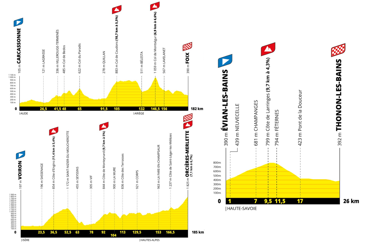 Diciamocelo chiaramente: alcune tappe prese singolarmente non sarebbero nemmeno male, prima fra tutte proprio la 20a che ha i connotati di un tappone, sbilanciandosi con il chilometraggio futuristico di 171 km che al giorno d'oggi è grasso che cola; anche la tappa precedente, con arrivo all'Alpe dal versante tradizionale, la 14a sui Vosgi e la 15a con arrivo al Plateau de Solaison offrono l'occasione di muoversi da lontano o comunque inventarsi strategie offensive, ma chiudendosi su salite molto impegnative risulterebbero spettacolari solo con una situazione di classifica che costringa i più forti a muoversi da lontano. Viceversa la tappa di Gavarnie ha un'ascesa finale troppo pedalabile dunque attaccare sul Tourmalet è un rischio che si prende solo si è costretti. Plausibilmente Pogacar avrà invece tutto sotto controllo, visto che le due cronometro in programma sono brevissime, peraltro con la prima che prevede l'aiuto dei compagni di squadra e la seconda che su 26 km ne ha 10 di salita.