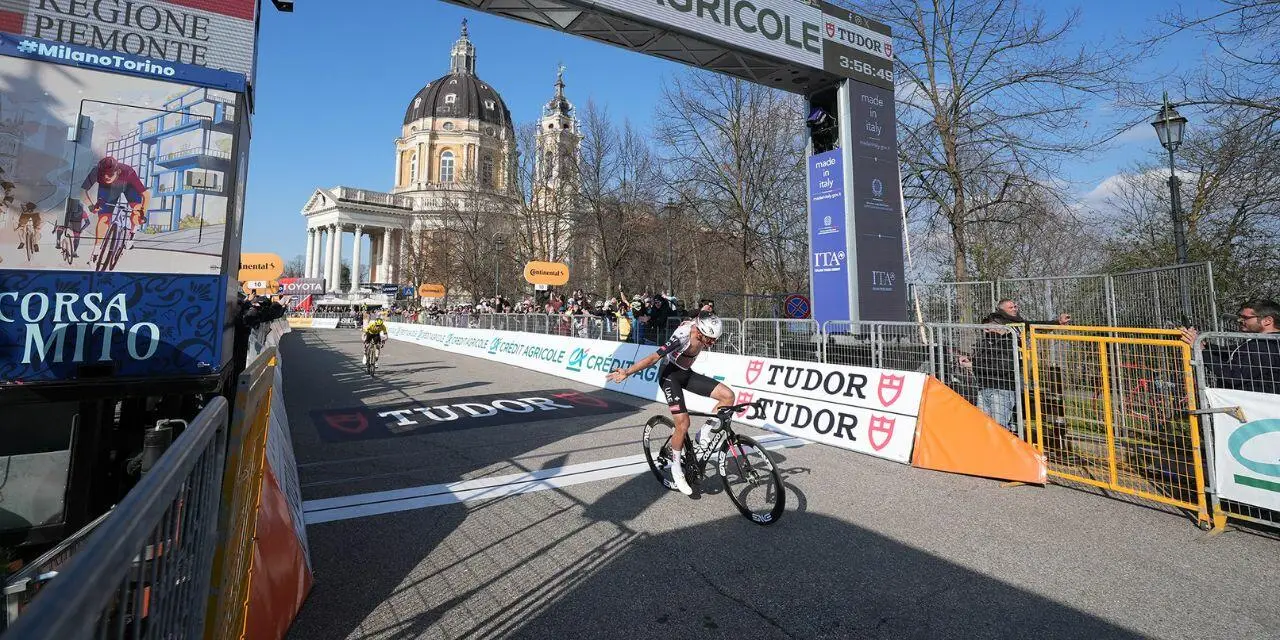 Isaac Del Toro (UAE Team Emirates-XRG) vince l'edizione centosei della Milano-Torino, battendo sul traguardo all'ombra della basilica di Superga Ben Tulett (Visma-Lease a Bike) e Tobias Halland Johannessen (Uno-X Mobility). Rimasti in sei dopo la selezione operata in salita dalla UAE Team Emirates-XRG, l'attacco di Del Toro ai -1.3km ha ridotto ulteriormente la contesa alle sole posizioni per il podio. Troppo generoso Tulett, che richiude ogni volta su di uno Johannessen che avrebbe potuto aspettare la volata, ma che forse oggi si sentiva battuto allo sprint. Top15 per Lorenzo Fortunato e Diego Ulissi (XDS-Astanta), rispettivamente ottavo e dodicesimo.