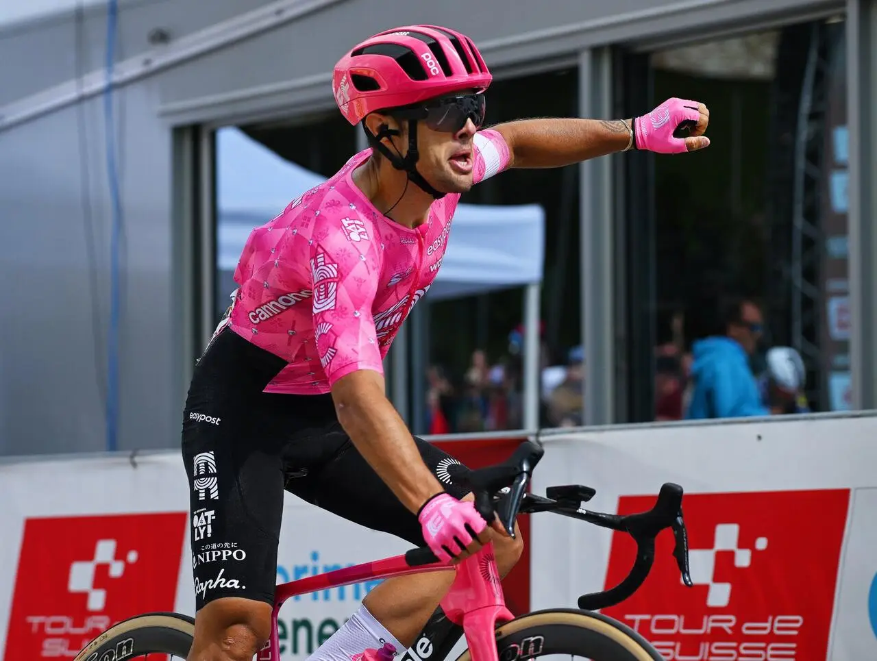 Il puncheur campano finalizza il lavoro della sua EF Education-EasyPost, anticipando Fabio Christen e Lewis Askey al traguardo; Romain Grégoire rimane in giallo