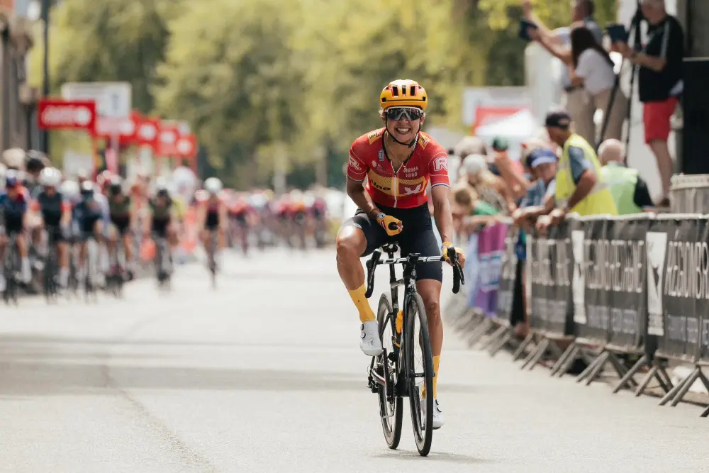 La Uno-X ci prova prima con Confalonieri e poi con la neerlandese, che attacca a quattro chilometri dal traguardo e arriva in solitaria. Sul podio Wood e Jaskulska