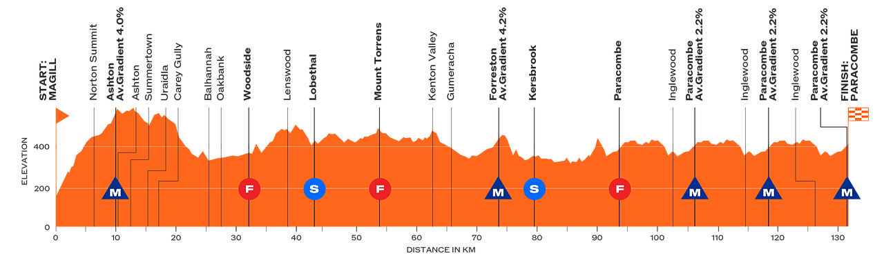 Per le donne tre giorni decisi da un doppio Corkscrew e una classica per velociste; gli uomini si giocano in prologo, doppio Corcskrew e tripla Willunga Hill