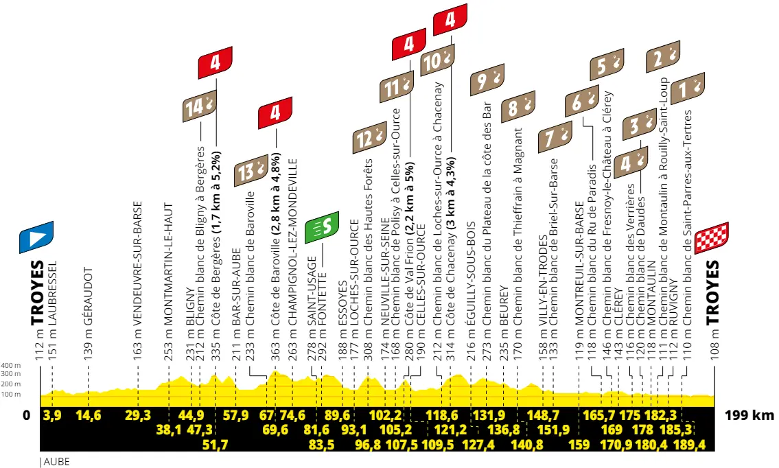 Fuga o non fuga, arriveranno a Troyes e i possibili pretendenti al successo sono molti, in verità più o meno gli stessi menzionati anche per l'8a tappa. La EF Education - EasyPost potrebbe rimuovere le stesse pedine, quindi Stefan Bisseger, Neilson Powless, Alberto Bettiol e Ben Healy. La Lidl-Trek, orfana di Mads Pedersen, può contare su uomini molto interessanti come Jasper Stuyven e Toms Skujiņš. Sicuramente da classiche è anche Biniam Girmay (Intermarché - Wanty), nonostante abbia vinto in volata le due frazioni conquistate a questa Grande Boucle; per lui c'è anche la possibilità di incrementare il vantaggio sui velocisti puri nella classifica a punti.