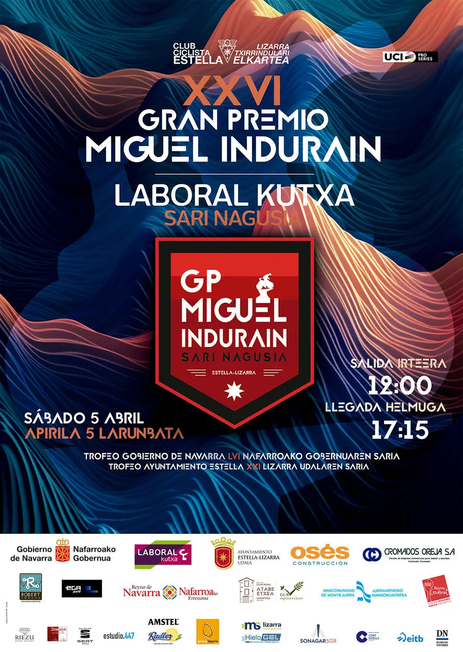 Il km 0 del GP Miguel Indurain sarà varcato alle ore 12.20 di sabato 5 aprile. La corsa potrà essere seguita in tv e streaming su RaiSport a partire dalle 16.00 e sulle piattaforme Discovery+ ed Eurosport a partire dalle 15.