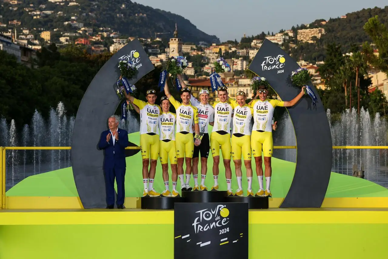 La squadra diretta da Mauro Gianetti riceverà in tutto 806.810 €, vale a dire più di 1/3 del montepremi totale di 2.282.200 € distribuito da ASO (Amaury Sports Organization) nelle tre settimane di corsa. Sulla falsariga di ciò che si è visto in strada, la UAE ha nettamente distanziato la concorrenza: più che doppiata la Visma-Lease a Bike, che porterà a casa una somma di 356.220 €, circa 100mila € in più della Soudal Quick-Step, cui andranno 248.860 €. Soltanto un'altra squadra ha accumulato premi a sei cifre: la Intermarché-Wanty cavalca l'onda Girmay, spingendosi a quota 111.760 €. Niente male per il team belga, che ha macinato buoni risultati anche nel 2024 (12 vittorie) a dispetto di un budget piuttosto contenuto.