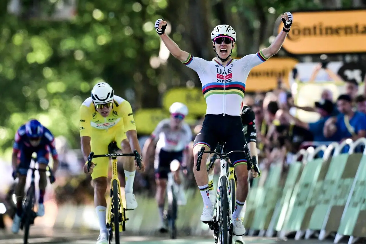 Lo sloveno fulmina allo sprint Mathieu van der Poel e Jonas Vingegaard. Evenepoel si difende. In ritardo Roglic, Mas e Lipowitz. Milan rafforza la sua maglia verde