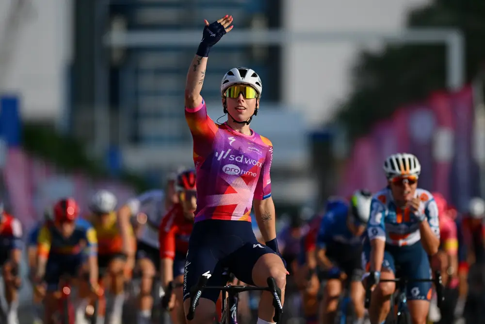 Non poteva non iniziare con una vittoria il 2024 su strada della SD Worx, per cui l'esordio assoluto coincideva con la prima tappa del UAE Tour Women. A rompere il ghiaccio è stata Lorena Wiebes, che si è imposta nettamente nella prima volata al Dubai Harbour.