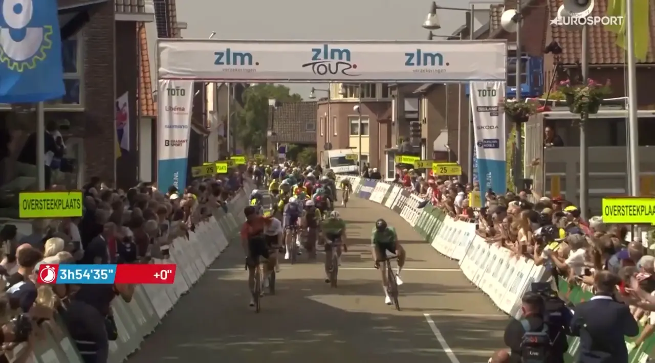 Ai -2 km però i fuggitivi avevano ancora 12" di vantaggio, e il gruppo è sopraggiunto solo quando ormai Schulting aveva lanciato la volata: il corridore della Diftar ha anticipato i compagni di fuga Rasenberg e Mouris, mentre la volata del gruppo, arrivato sui fuggitivi quando era ormai troppo tardi, ha regalato a van Uden il quarto posto. La settima e l'ottava posizione sono andate a Giovanni Lonardi (Polti Kometa) e Jakub Mareczko (Corratec-Vini Fantini).
