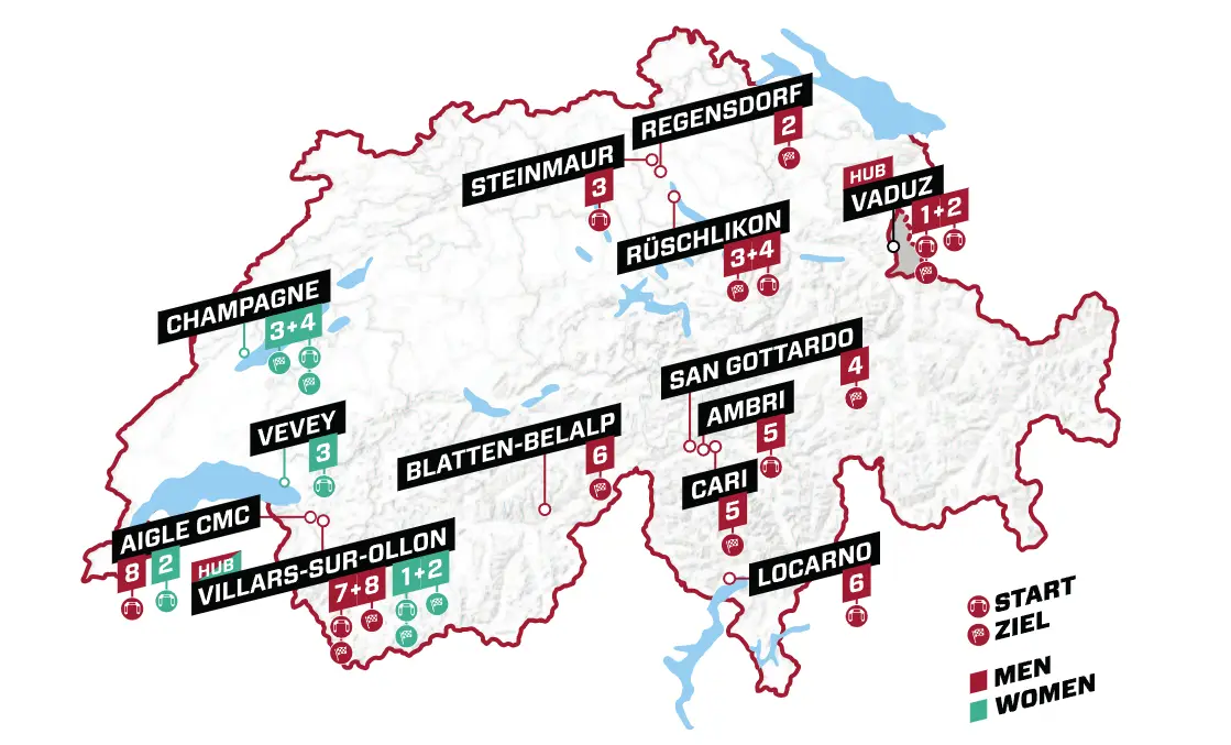 Il Tour de Suisse 2024 si appresta a partire con un percorso molto duro che chiama allo scoperto gli uomini di classifica tutti i giorni. I big dovranno sicuramente dare tutto nel prologo di 5 km, forse già stuzzicarsi nelle prime due tappe in linea di media montagna e poi affrontarsi in 4 tappe di montagna consecutive, tutte con arrivo in salita, prima dell'ultima sfida a cronometro, anzi cronoscalata. Nonostante tutte queste montagne, in verità il disegno delle tappe risulta abbastanza monotono ed è assai probabile che in ogni tappa gli scalatori attendano gli ultimissimi km per muoversi, considerando che non devono nemmeno avvantaggiarsi nei confronti di specialisti della cronometro.