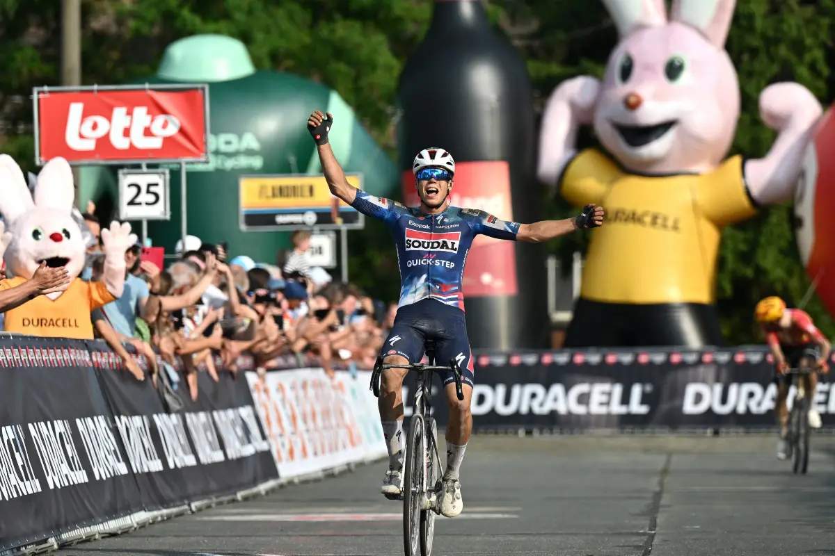 Il francese della Soudal Quick-Step ha la meglio sul norvegese nell'arrivo alla Cittadella di Diest. Del Grosso terzo davanti a Hermans, Philipsen si spegne nel finale ed è nono. Wiebes vince la corsa femminile