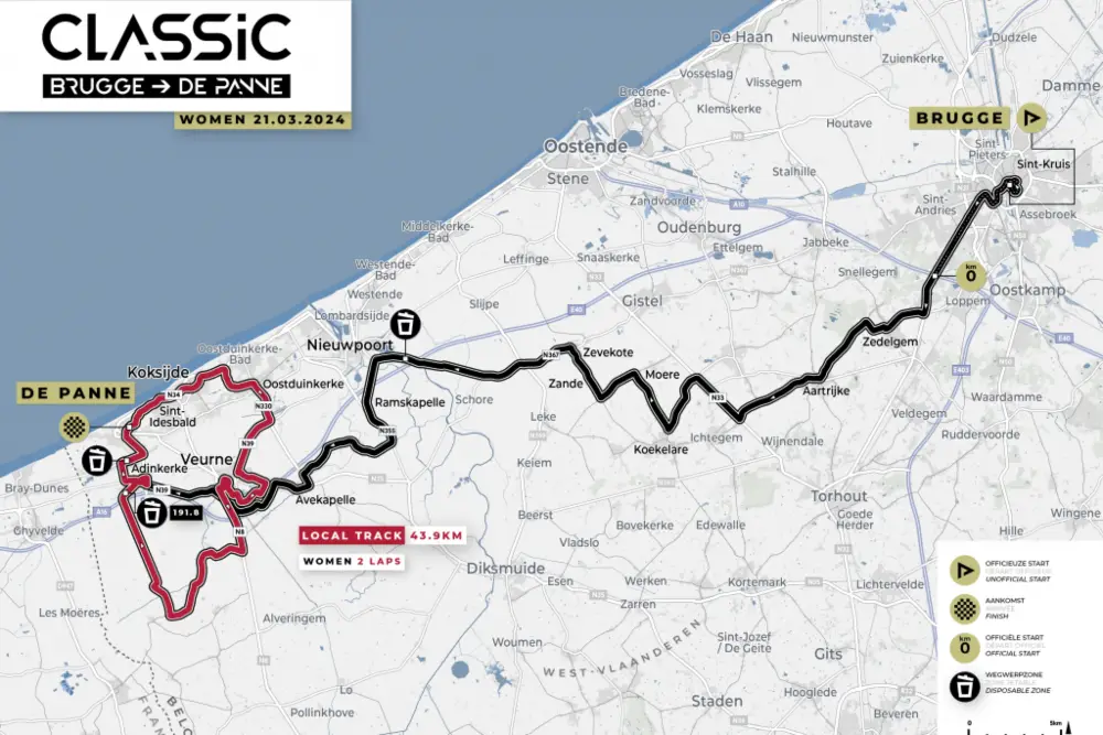 Non ci sarà però la grande favorita per questo tipo di gara: la SD Worx-Protime di Lorena Wiebes ha infatti rinunciato alla partecipazione, non avendo i numeri per poter essere al via. “Ci dispiace dover saltare una classica, ma dopo le cadute alla Nokere Korse alcune di noi sono ancora alle prese con dei problemi fisici. Con qualche giorno di riposo in più, potranno recuperare pienamente verso i grandi appuntamenti in calendario per le prossime settimane. Anche Lorena Wiebes è stata tra le coinvolte nella caduta a Nokere, e normalmente sarebbe dovuta essere la nostra punta di diamante per la Brugge-De Panne. Speriamo di poter essere nuovamente al completo per la Gent-Wevelgem e competere di nuovo per la vittoria", ha dichiarato il direttore sportivo Danny Stam.