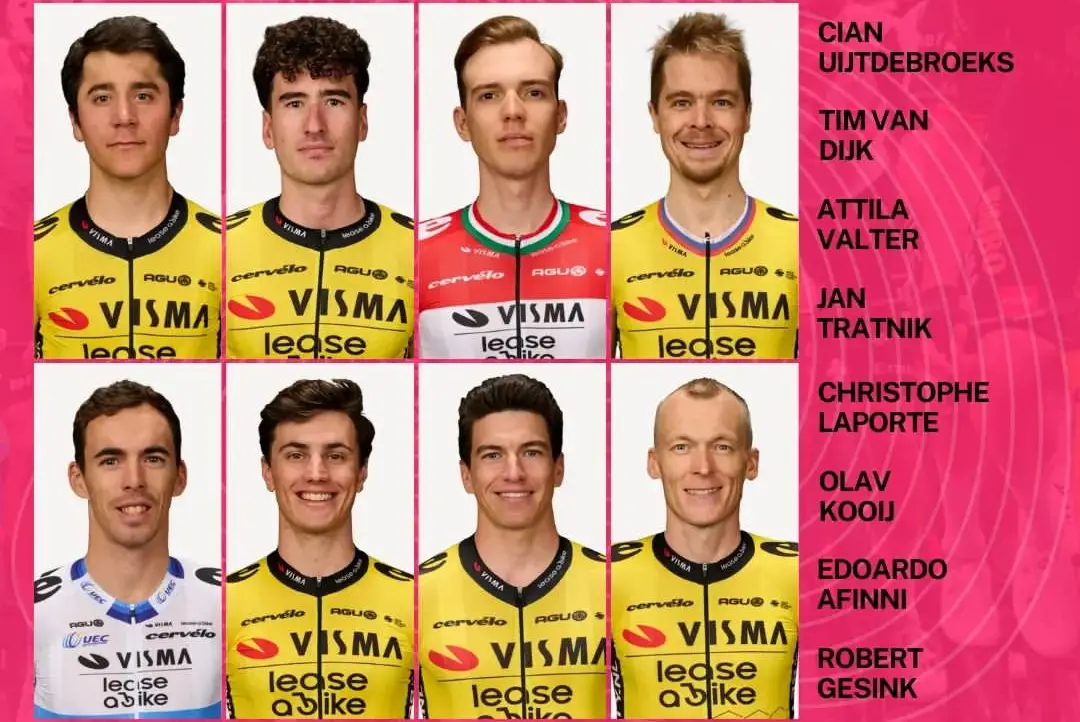 Cian Uijtdebroeks ha avuto una prima parte di stagione con alti e bassi: alla Parigi-Nizza è stato la seconda punta accanto al vincitore Matteo Jorgenson, concludendo la corsa al settimo posto, mentre alla Volta a Catalunya un malessere lo ha debilitato portandolo al ritiro all'ultima tappa di Barcellona. L'anno scorso il belga se ne andò dalla Bora-hansgrohe lamentando il bullismo ricevuto da parte dei compagni, non dopo essersi rammaricato che la squadra fosse più indietro rispetto alle altre nelle cronometro: ora ci sono tutte le condizioni per poter fare bene, sia per il livello della squadra, vincitrice di tutti i GT dello scorso anno, sia per la presenza di uomini che possono essere un supporto fondamentale per le tappe più dure: oltre al sopraccitato Tratnik infatti la squadra gli ha affiancato l'esperto Robert Gesink (l'olandese compirà 38 anni il 31 maggio) e il campione ungherese su strada e a corno Attila Valter, anch'egli giovane e con molti margini di miglioramento, per quanto già alla quarta partecipazione alla Corsa Rosa, dove nel 2021 vestì anche la maglia rosa per tre giorni. Per il classe 2023, che già l'anno scorso fu ottavo alla Vuelta a España , l'obiettivo di una top five potrebbe non essere irrealizzabile.