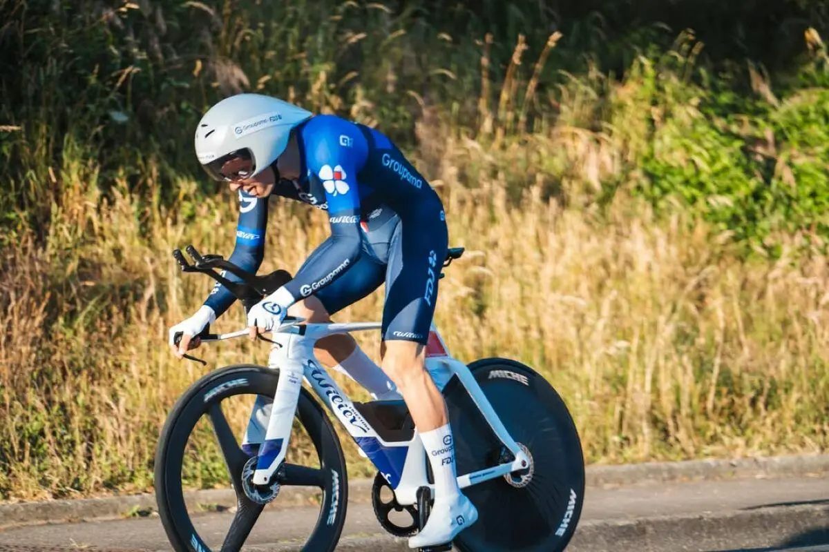 Il francese precede il connazionale Cosnefroy nella crono di 5.4 km a Laval. Domani favoriti Van den Berg, Girmay e Coquard