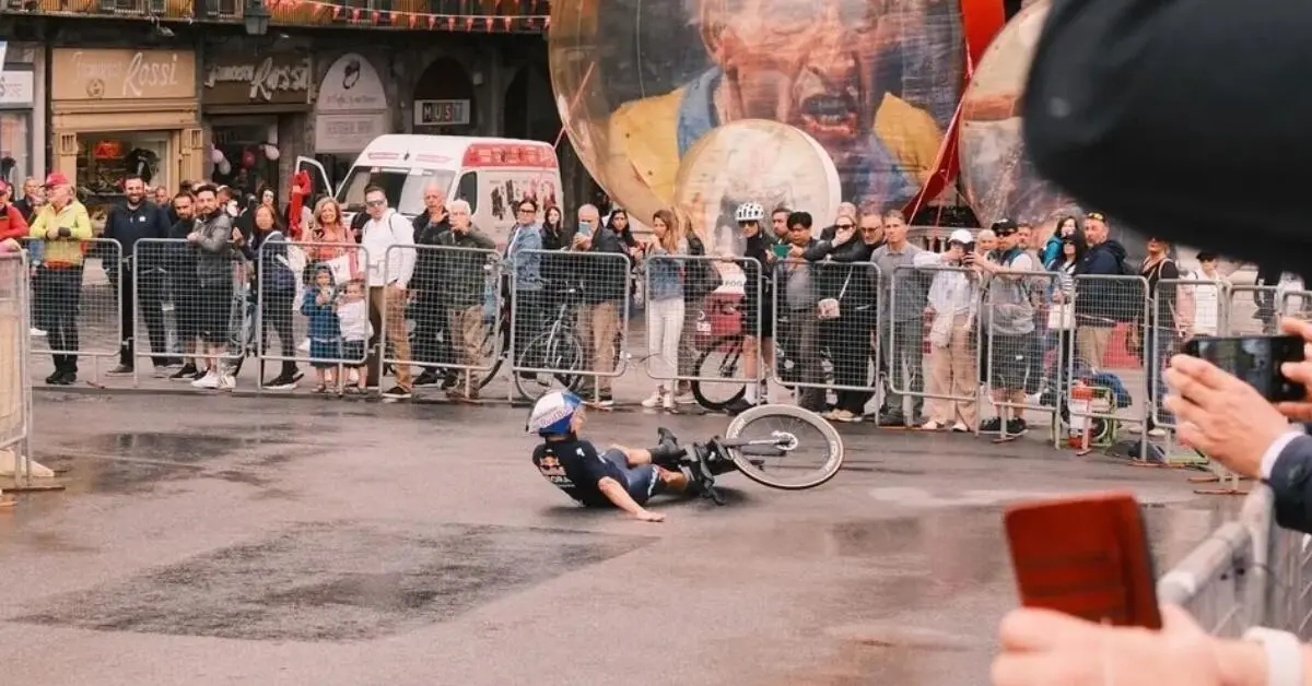 Lo sloveno finisce a terra per la seconda volta in pochi giorni: dopo la caduta nella tappa di domenica, il capitano della Red Bull-BORA-Hansgrohe è caduto nuovamente in ricognizione