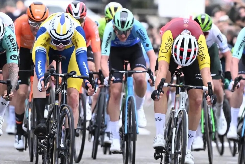 La collaborazione tra i primi quattro vacilla al punto che il gruppo - nonostante il lavoro di interdizione degli Arkéa e degli INEOS - sembra sul punto di rientrare. Poco prima di scollinare, Vauquelin porta il suo terzo affondo, ma questa volta nessuno dei tre compagni decide di seguirlo. Ancora una volta, il corridore della formazione bretone non riesce a fare la differenza: Laurence chiude su di lui in fondo alla discesa (-3), Seixas e Kielich si accoderanno subito dopo. Una volta tornati insieme, i battistrada cominciano pericolosamente a studiarsi. Il belga della Alpecin prova a rompere la monotonia con un paio di scatti, ma il destino dei quattro è ormai segnato: fuga annullata a 400 metri dalla linea.
