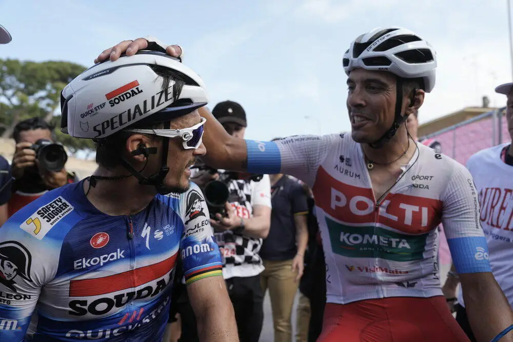 Le dichiarazioni dopo la dodicesima tappa del Giro. Julian ringrazia Maestri per la collaborazione e afferma: "avrebbe meritato di vincere anche lui". I classicomani Valgren, Hermans e Trentin non potevano fare di più