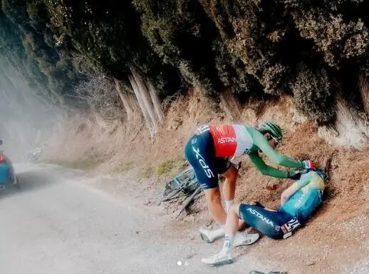 Tra i tanti momenti che hanno segnato la recentissima Strade Bianche ce n'è uno che, pur essendo passato sottotraccia in un primo momento, sarà difficile da dimenticare per gli appassionati. Non ha a che fare con la terza affermazione di Tadej Pogačar o con la giornata maiuscola di Tom Pidcock, ma con una caduta.