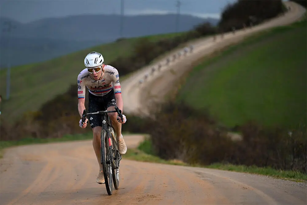 Tra le tante qualità eccelse che caratterizzano Tadej Pogacar, quella che i ciclofili amano di più è la sua capacità di sfidare, quasi sempre in modo vincente, ogni forma logica di corsa. Questo, non per la prima e speriamo neanche per l'ultima volta, è accaduto nella recente Strade Bianche: una ripetizione in modo ancor più eloquente di quanto già fatto nel 2022, posto che due anni fa il campione di Komenda attaccò a 50 chilometri dall'arrivo mentre sabato scorso ha salutato tutti ai meno 80.
