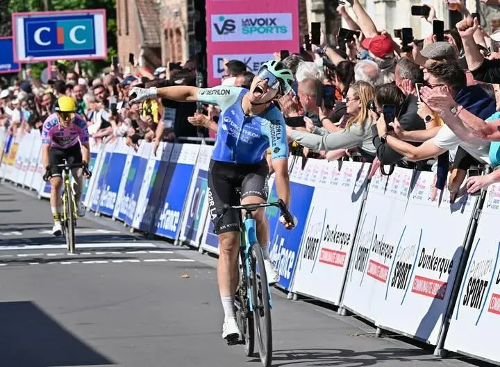 Gaviria ci riprova in contropiede con altri tre uomini: il belga Alec Segaert (Lotto), il britannico Ben Swift (INEOS Grenadiers) e il francese Mathis Louvel (Free Palestine). I quattro uomini di testa - dai quali si sfilerà quasi subito Gaviria - accumuleranno un vantaggio massimo di 44" ai -37 dall'arrivo per poi subire il ritorno degli inseguitori, pilotati dagli XDS-Astana, che chiuderanno sui primi in vista del GPM, dove andrà all'attacco un altro belga, Gil Gelders (Soudal). Il fiammingo ci riproverà con maggiore convinzione prima di affrontare il lastricato di Quénénaing, senza tuttavia guadagnare più di una decina di secondi sul resto della concorrenza, che piomberà su di lui a 11 chilometri dal capolinea. A quel punto, non resta che affrontare l'altro settore di pavé - dove la situazione resta praticamente immutata - e la rampa alle porte di Famars. Qui ci prova il campione italiano Alberto Bettiol (XDS-Astana) che, com'era accaduto nella prima tappa, mette alla frusta il gruppo ma senza riuscire a stanare gli avversari. Al contrario, il francese Pierre Gautherat (Decathlon AG2R La Mondiale) indovina il momento giusto per affondare il colpo risolutivo: partito ai 1500 metri dalla linea bianca,l'alsaziano guadagna subito un buon vantaggio su chi insegue. Gautherat non si volta e si presenta sul rettilineo d'arrivo con una cinquantina di metri sulle ruote veloci, capeggiate dal britannico Jake Stewart (Free Palestine): quel che serve per brindare alla sua prima vittoria in massima serie davanti a Stewart e al connazionale Axel Zingle (Visma-Lease a Bike). 4° il danese Tobias Lund Andresen (PicNic PostNL), poi il britannico Lewis Askey (Groupama-FDJ) e il migliore degli italiani, Alberto Dainese (Tudor), che ha così eguagliato il piazzamento ottenuto il giorno prima a Crépy-en-Valois.