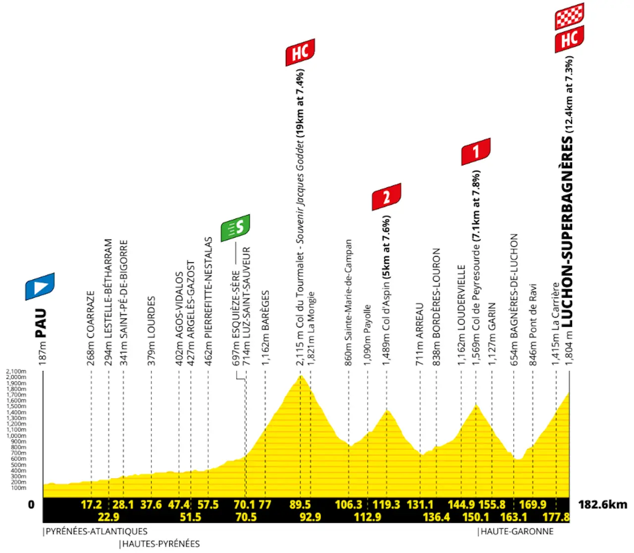 Pur essendo una delle due tappe regine, l'impressione è che possa avere un impatto relativamente ridotto sul proseguimento di questo Tour. La classifica è piuttosto definita in moli aspetti, Tadej Pogačar (UAE Team Emirates) viene da due successi consecutivi e potrebbe lasciare spazio ai fuggitivi, mentre Jonas Vingegaard (Team Visma | Lease a Bike) non sembra in grado di contrastarlo. Proprio il danese sarà uno dei fattori principali di questa tappa: queste frazioni sono quelle dove per caratteristiche può forse avere qualcosa in più dello sloveno, ma questo è tutto da dimostrare; se dovesse fare corsa dura è possibile che la fuga non abbia spazio proprio per l'alto ritmo tenuto dal gruppo; va però detto che la Visma vista sul Soulor non è sembrata in grado di poter mettere in atto tattiche aggressive. Forse inseriranno in fuga buoni scalatori da usare come appoggio per un'azione da lontano del danese.