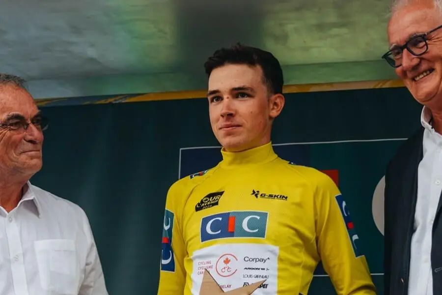 Michael Leonard premiato con la maglia gialla dopo la vittoria nel prologo del Tour de l'Avenir © Tour de l'Avenir via IG