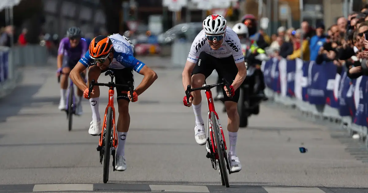 Un giallo appassionante fino all'ultima riga: la 41ª edizione della Settimana Internazionale Coppi e Bartali si è decisa sul traguardo di Gemona del Friuli in favore di Mauro Schmid, che ha vendicato le due sconfitte subite per mano di Axel Laurance, battendolo nella volata conclusiva della breve corsa a tappe marchiata GS Emilia. Il gioco degli abbuoni ha favorito il campione svizzero della Jayco-AlUla, che ha così spodestato il rivale dalla vetta della generale. Ad ogni modo, la classifica non è affatto bugiarda: Schmid e Laurance sono stati i due corridori più forti della compagnia e lo hanno dimostrato anche nella giornata più dura della corsa. Se il corridore elvetico ha provato a fare la differenza sulle rampe del Monte Stella, raggiungendo in cima il compagno di squadra Alan Haterly (poi 3° al traguardo e in classifica generale), il suo dirimpettaio si è inventato un numero in discesa per accodarsi al treno dei Jayco, rientrando sulla testa della corsa a 6 chilometri dal traguardo. Il resto della concorrenza si è invece contesa gli avanzi del banchetto: Giovanni Aleotti ha regolato il ristretto gruppo dei battuti; Thomas Pesenti si è accomodato ai piedi del podio finale.