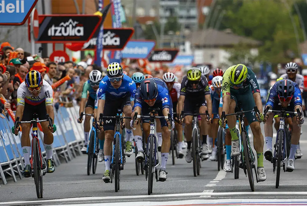 L'azione degli otto è durata fino alla prima scalata a Muniketagaina. Il gruppo era comunque vicino e da lì è emerso Santiago Buitrago (Bahrain-Victorious) che ha ripreso tutti (non da solo) per sprintare per primo al Gpm dei -36, davanti a Janssens, ultimo superstite del breve attacco.