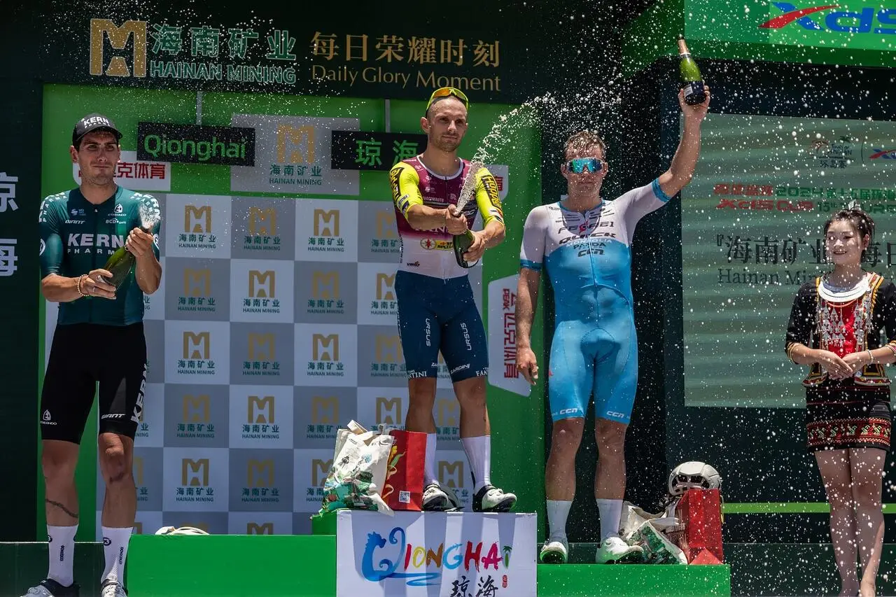 Soffre quando la strada sale, condanna di ogni velocista puro, ma quando ci sono le giuste condizioni Jakub Mareczko (Team Corratec - Vini Fantini) brilla e conferma di non avere perso l'esplosività e le qualità che lo hanno reso noto. Per la prima volta nel 2024 al via di una corsa ciclistica in Cina, dove aveva collezionato vittorie a grappoli anni addietro, non lascia spazio a dubbi e si prende vittoria della prima tappa e maglia di leader del Tour of Hainan. Inconfondibile non solo per i colori accesi della maglia della Corratec - Vini Fantini, ma anche per la posizione aerodinamica, schiacciato sul tubo orizzontale, la vittoria non è mai in discussione fin dai primi metri della volata. Una soddisfazione per lui e per la Corratec, unica squadra italiana al via insieme alla VF Group Bardiani Faizané.