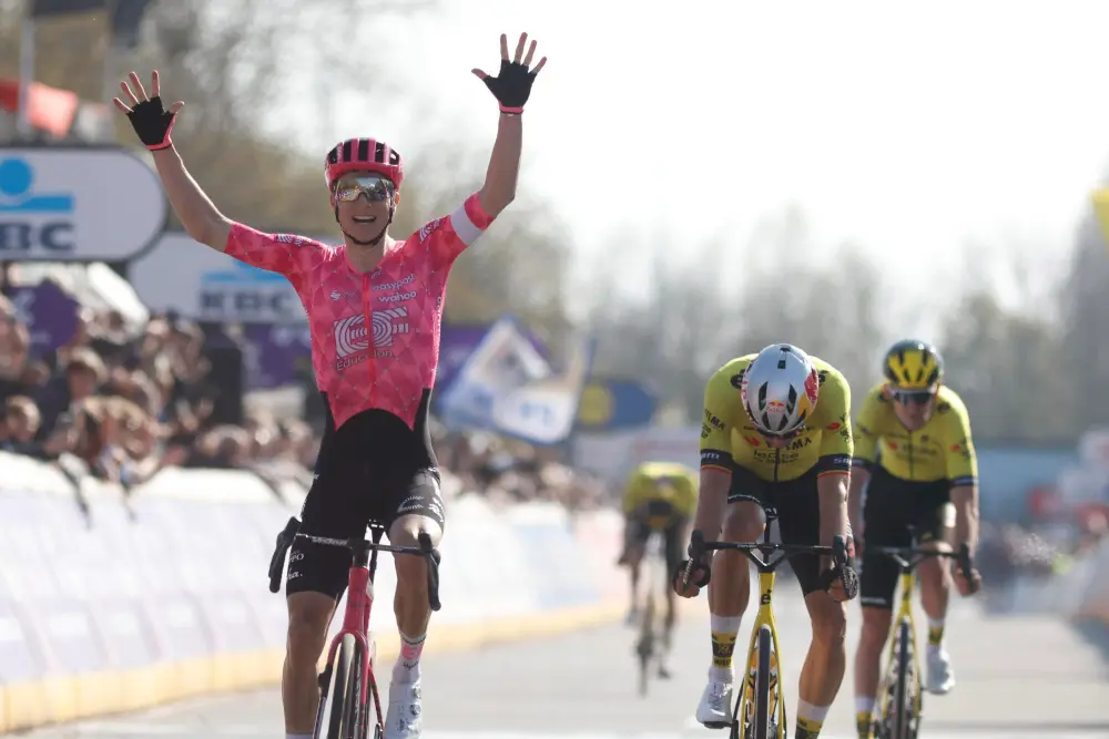 Probabilmente non avrà avuto un poster di Ian Stannard nella sua camera a Sacramento, California, ma Neilson Powless è riuscito a replicare una delle vittorie più incredibili ed elettrizzanti che un corridore si possa regalare. Lo statunitense della EF Education-EasyPost vince la Dwars door Vlaanderen contro una squadra intera, la Visma Lease a Bike, che dopo un grandissimo attacco a tre a metà gara si è poi dimenticata di vincere la corsa.