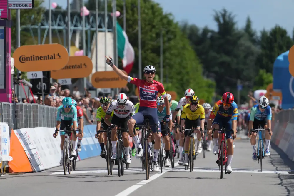 Il francese della Soudal Quick-Step ha la meglio allo sprint a Borgomanero, battuti Teutenberg e D'Amato. Widar resta in maglia rosa
