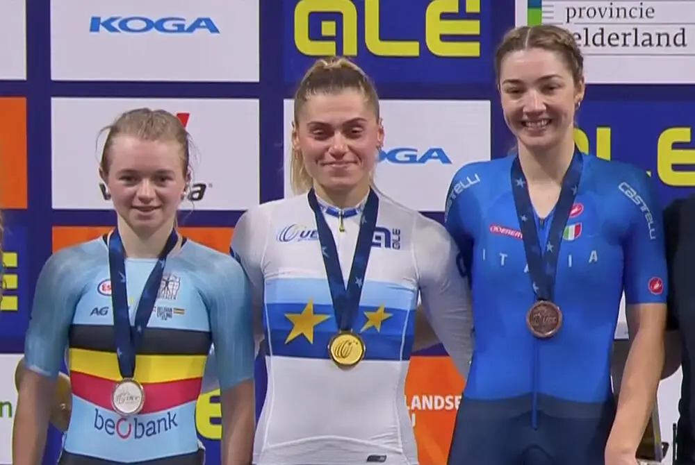 La 24enne bergamasca, due volte iridata nella specialità, nella rassegna continentale era a secco di medaglie dall'oro del 2020, pur risultando quasi sempre tra le protagoniste della gara (l'anno scorso per esempio fu quinta). La prova di Apeldoorn è stata piuttosto tattica, non ci sono stati attacchi e si andati veloci fino alla volata.