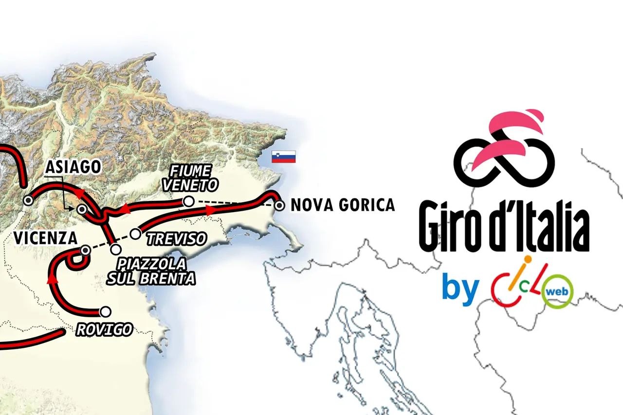 Innanzitutto, pare ormai abbastanza probabile che la tappa di Vicenza prenderà il via da Rovigo, che di recente aveva avanzato una candidatura. Già avevamo detto dell'ingresso nella provincia di Vicenza da ovest e di un probabile circuito con traguardo posto a Monte Berico. Il giorno dopo si continua a confermare la frazione da Treviso a Nova Gorica con transito sul Piave nella simbolica data del 24 maggio e successivo sconfinamento in Slovenia. Alla domenica la tappa di montagna si svolgerà a bassa quota, da Fiume Veneto (a dispetto del nome, in Friuli) ad Asiago. Qui si effettuerà il giorno di riposo, per poi ripartire in pianura da Piazzola sul Brenta alla volta del Trentino.