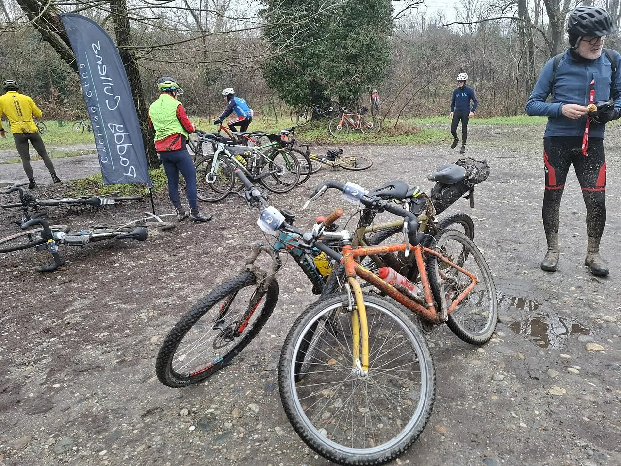 L’arrivo è fissato presso il Paddy Cullens Pub, dove ad attendere i partecipanti ci sono zuppa di legumi e birra. È qui che la giornata trova la sua naturale conclusione. Brindisi, incontri tra chi si è incrociato lungo il percorso e tra chi si rivede solo a fine evento, racconti di piccole disavventure, di scivolate evitate per un soffio, di tratti di fango affrontati con più fortuna che tecnica. Le bici, ancora infangate, vengono appoggiate ovunque, mentre attorno ai tavoli prende forma il vero bilancio della giornata.