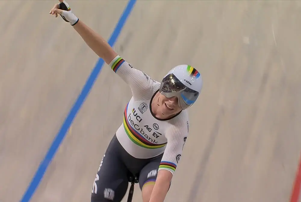 La belga conquista due titoli in venti minuti, quarto posto per la bergamasca nell'Eliminazione e per la cremasca nei 500 metri. Simone Consonni in corsa per il podio nell'Omnium