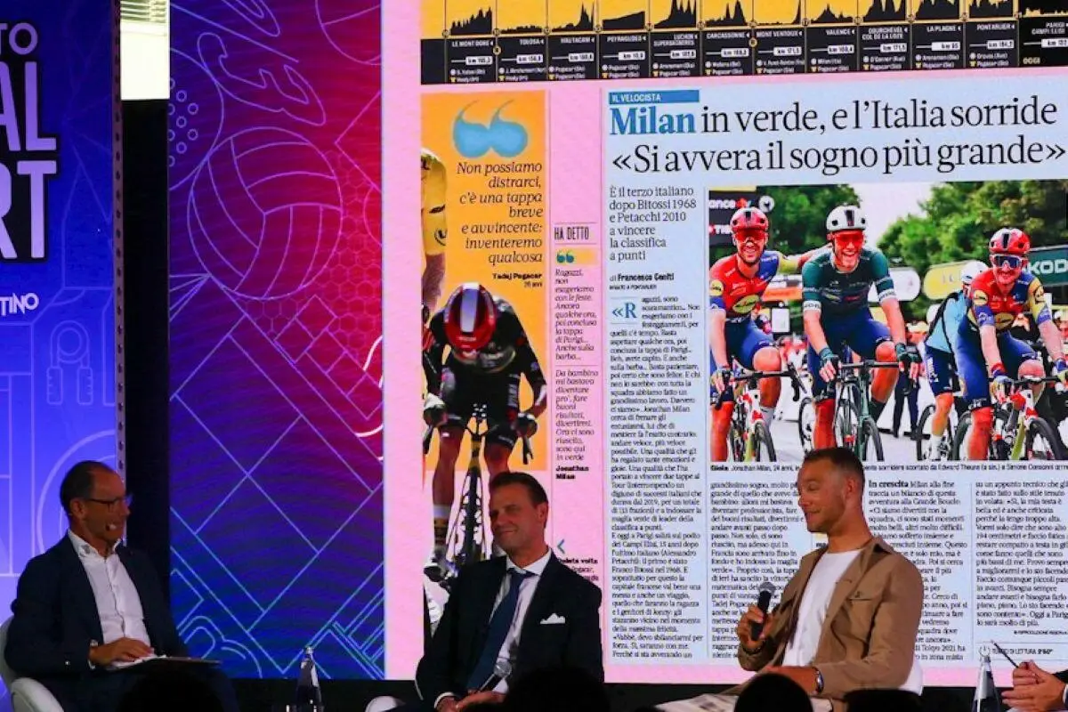 Jonathan Milan, 25 anni, è salito sul palco del Festival dello Sport accanto ad Alessandro Petacchi, per tracciare il bilancio di una stagione positiva e parlare di nuovi progetti. Insieme a Petacchi e Franco Bitossi, Milan è infatti uno dei soli tre italiani ad aver vinto la classifica a punti al Tour.