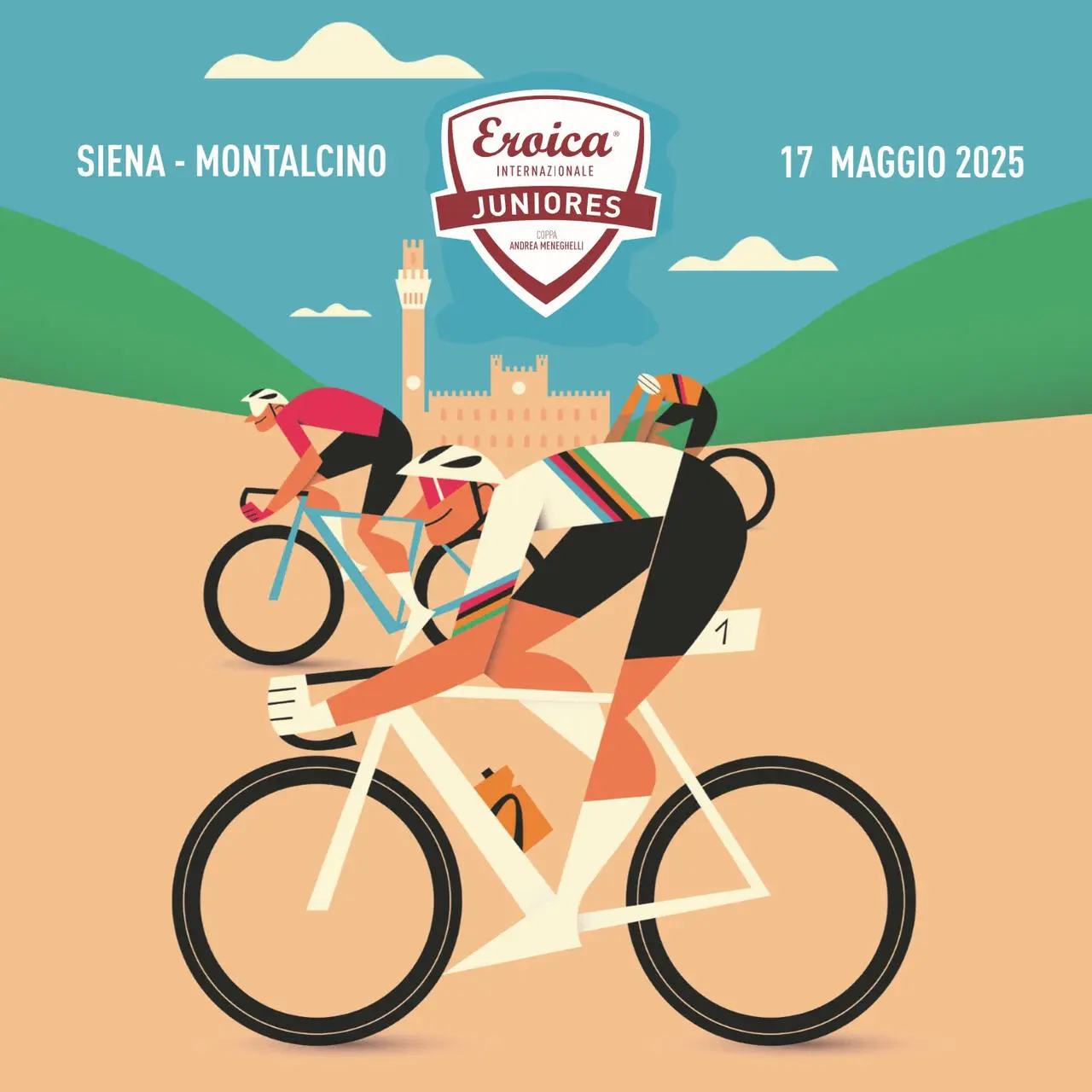 L'interesse del gruppo Eroica per il ciclismo giovanile è sempre stato fortissimo - basti ricordare il progetto GiroBio che dal 2009 al 2012 ha coperto l'albo d'oro del Giro d'Italia dilettanti - e questi ultimi anni ne sono una conferma. L'affaccio sulla categoria junior è iniziato nel 2021 con la prima edizione di quella che è comunemente conosciuta come Siena-Montalcino e formalmente intitolata come Coppa Andrea Meneghelli, poi nel 2023 si è aggiunta la prova di Coppa delle Nazioni, che peraltro non aveva mai fatto tappa in Italia (prove iridate escluse). Dopo il successo dell'edizione 2024, la gara a tappe è stata annullata essendosi rivelato uno sforzo economicamente troppo difficile da sostenere, ma la classica continua la sua storia e si conferma un appuntamento irrinunciabile, tanto più quest'anno che si corre alla vigilia della tappa degli sterri del Giro d'Italia, rendendo le strade bianche senesi il centro del mondo - quantomeno ciclistico - per un paio di giorni.