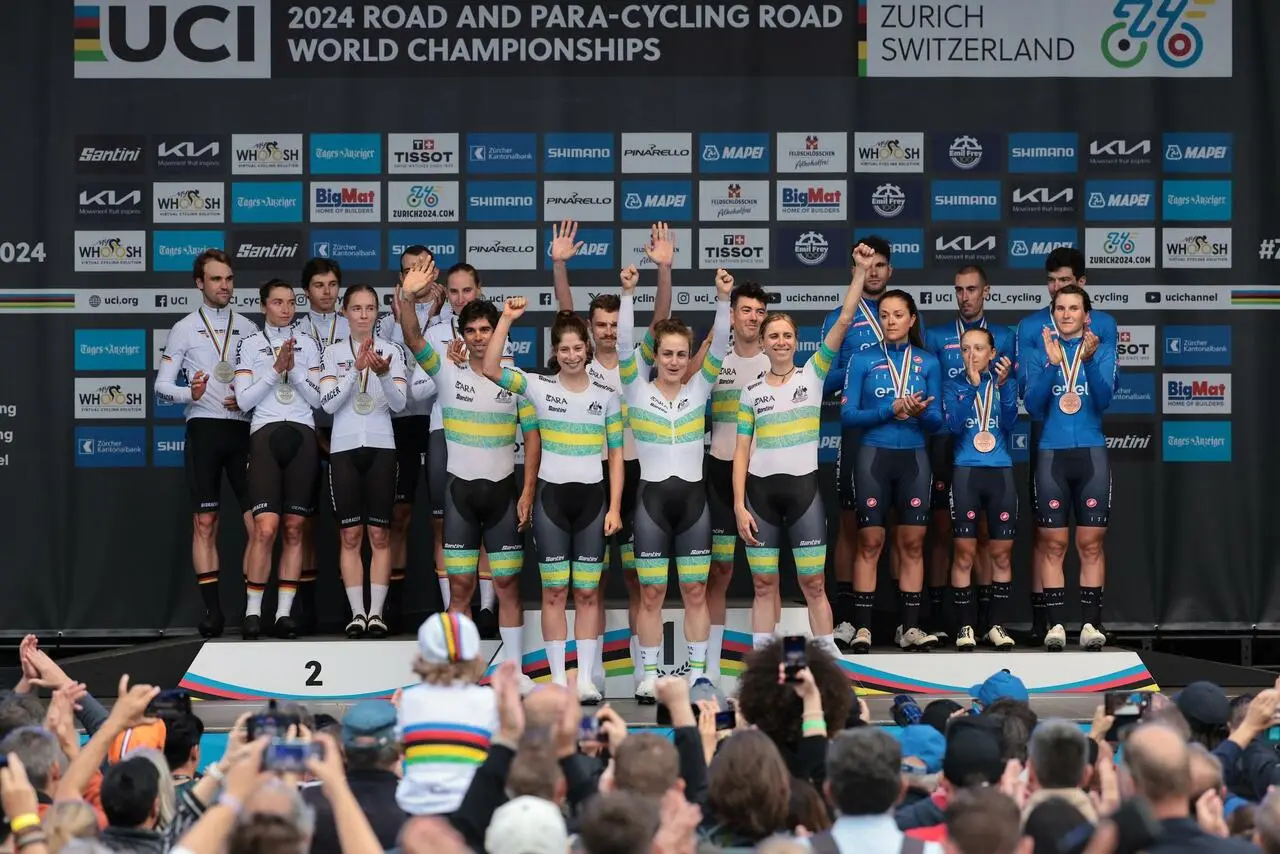 L'Australia ha vinto la Mixed Relay ai Campionati mondiali di Zurigo 2024, battendo per 85 centesimi la Germania e di 8" Italia. La selezione azzurra era composta da Gaia Realini, Elisa Longo Borghini e Soraya Paladin, Filippo Ganna, Edoardo Affini e Mattia Cattaneo, quella australiana da Grace Brown, Brodie Chapman, Ruby Roseman-Gannon, Ben O'Connor,