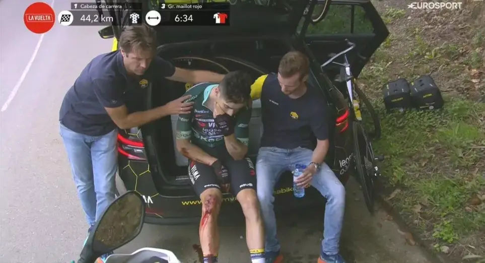 La iella ha occhi solo per Wout: Van Aert cade in discesa alla Vuelta, è costretto al ritiro