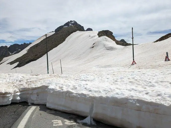 La temuta scalata a quota 2642 metri - in programma nella quarta tappa della Grande Boucle (Pinerolo-Valloire, 140 km) - potrebbe essere cancellata dal percorso per le copiose nevicate che hanno reso impraticabile il leggendario passo alpino. Le foto pubblicate su X dall'account ammattipyöräily sono inequivocabili: lo spessore della coltre bianca è tale che prevederne la rimozione in tempo per martedì 4 luglio appare al momento piuttosto improbabile.