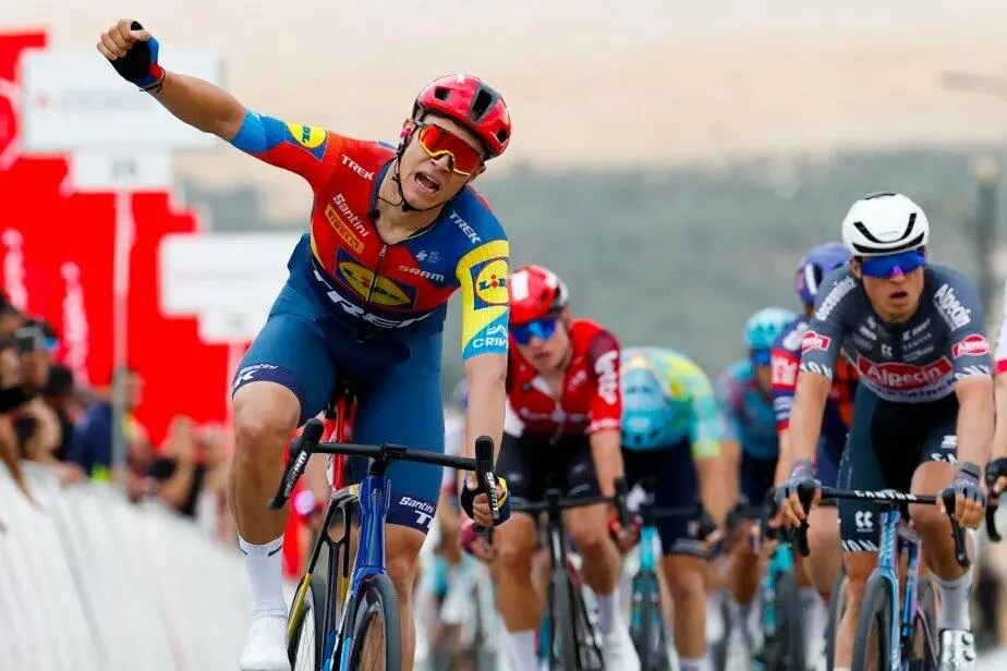 Il velocista della Lidl-Trek esce di ruota al fenomeno sloveno e resiste al ritorno di Jasper Philipsen: terzo successo stagionale