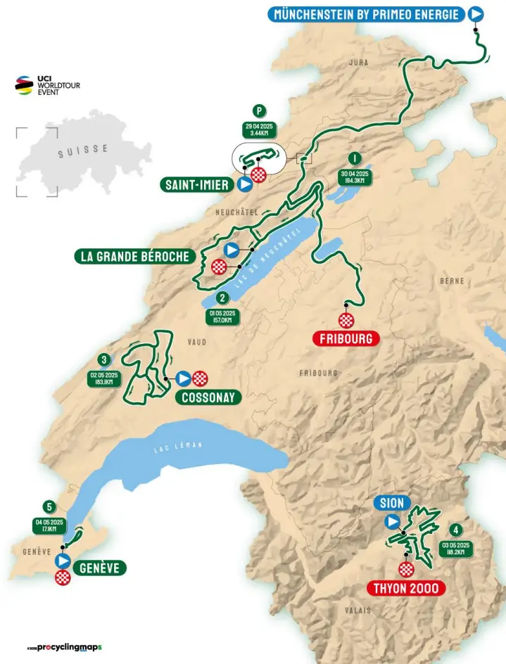 Percorso molto esigente che ogni giorno propone difficoltà rilevanti: saranno decisivi la durissima tappa di Thyon 2000 e la cronometro finale di Ginevra
