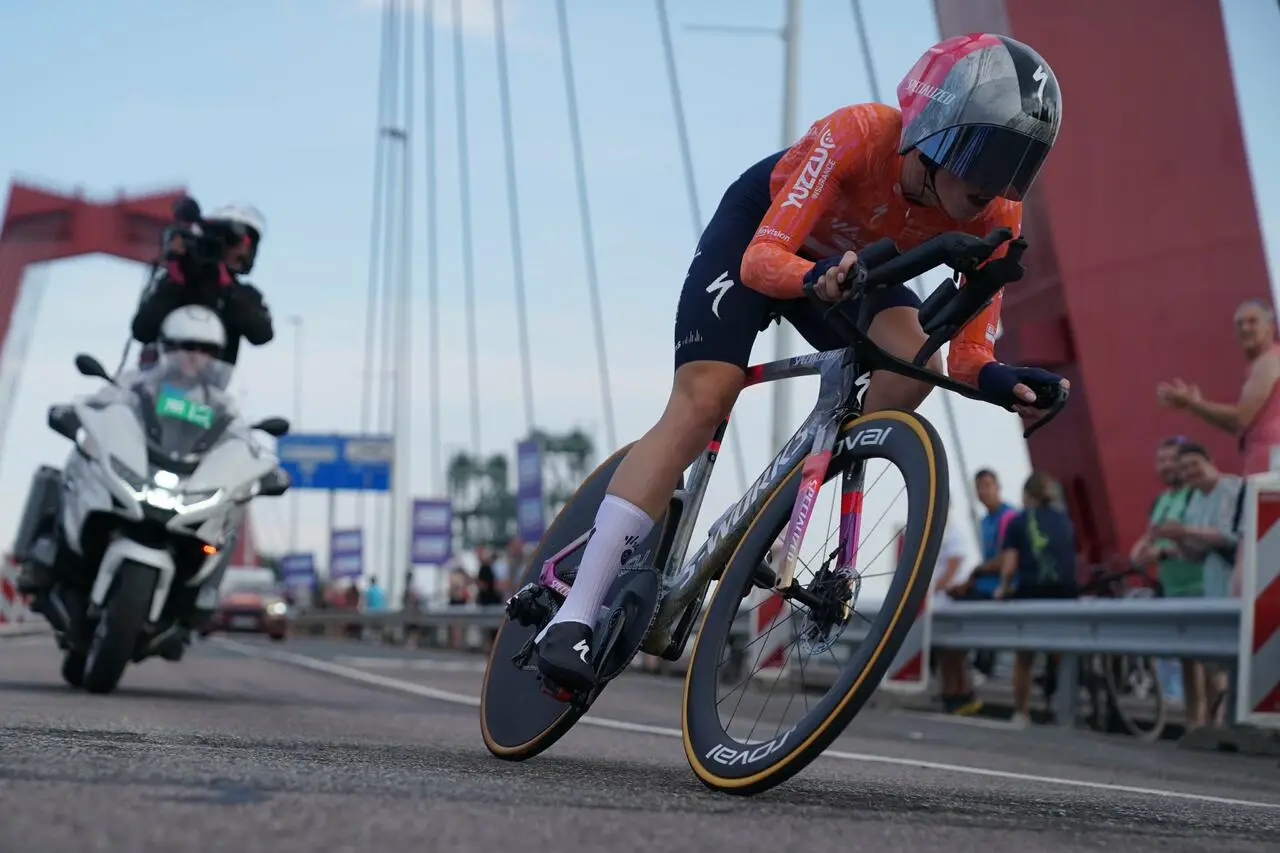 Dopo di lei fanno una buona prova Cédrine Kerbaol (CERATIZIT-WNT) e Lorena Wiebes (SD Worx), che riesce a chiudere la prova in top10. Charlotte Kool (dsm-firmenich) parte per ultima ed è costretta a cedere la maglia gialla riconfermata stamattina: non le basta per tenerla il tesoretto di 20" che la separavano da Vollering, che la sopravanza sul traguardo di 25".