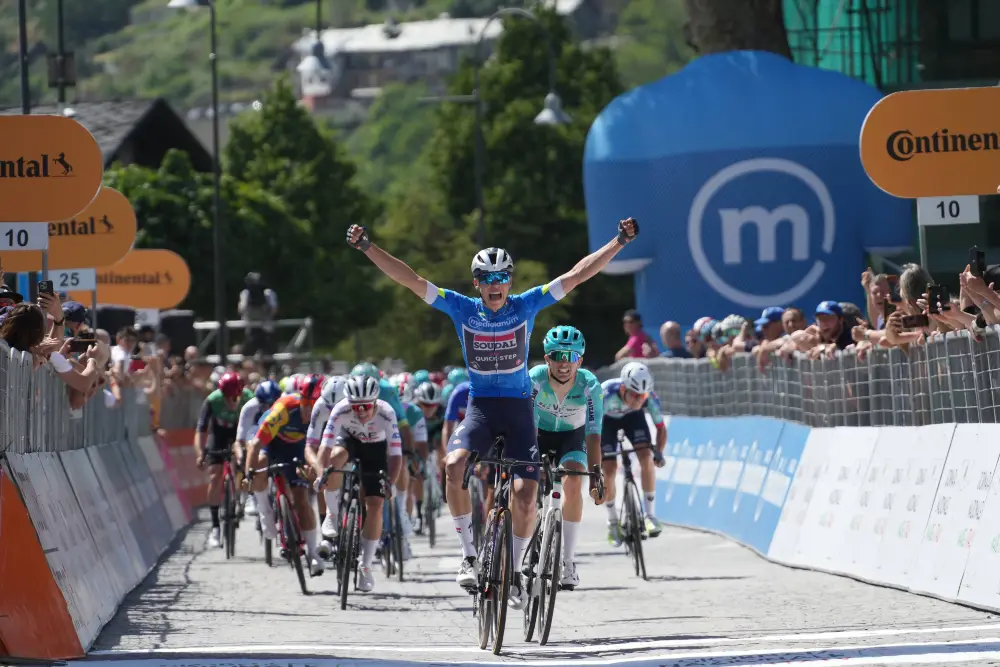 Il francese della Soudal Quick-Step non tradisce le attese nella prima volata a Saint-Vincent, battendo Conforti e Glivari. Per lui anche il sorpasso in classifica su Söderqvist