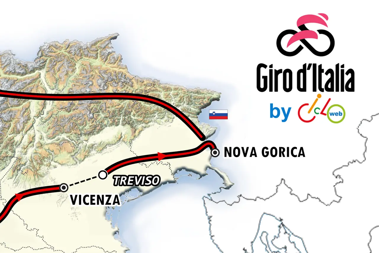A smuovere le acque sono stati molteplici articoli della stampa slovena, uno dei quali in particolare rilanciava la notizia fornendo dettagli abbastanza puntuali sul percorso. A quanto pare la 14a tappa partirà da Treviso raggiungendo il confine con la Slovenia nei pressi di Cormons. Da qui attraverserà le colline del Collio, per rientrare in Italia a San Floriano, seguendo in parte le strade della tappa di Gorizia del 2021. Dopo la discesa sul capoluogo ci si dirigerà verso il confine sloveno per entrare a Nova Gorica e transitare sotto il traguardo in Trg Europe (la piazza posta al confine tra i due stati) e iniziare qui un circuito cittadino di una dozzina di km da ripetere due volte. Facendo combaciare le località annunciate per il 2025 e le strade percorse nel 2021, si riesce agevolmente a ricostruire il tratto transfrontaliero che precede il circuito finale e che vi proponiamo qui sotto in un profilo dettagliato. I due giri conclusivi sono ancora avvolti nel mistero, ma potrebbero coinvolgere lo strappo di Castagnevizza (Kostanjevica in sloveno) percorso anche nel 2021 ad appena 3 km dal traguardo; ad ogni modo in 12 km non c'è spazio di allontanarsi ulteriormente dalla città. Se questo fosse completamente pianeggiante la tappa risulterebbe fondamentalmente per velocisti, mentre con lo strappo già citato già potrebbe aprirsi a fughe e finisseur.