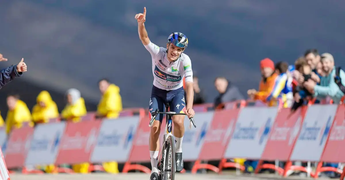 Dopo aver rischiato di perdere contatto dai migliori sul tratto più duro della salita, il 22enne della Red Bull-BORA-Hansgrohe stacca tutti ai -3500 metri dalla vetta. Battuti Pidcock e Hindley. Vingegaard guadagna un paio di secondi su Almeida