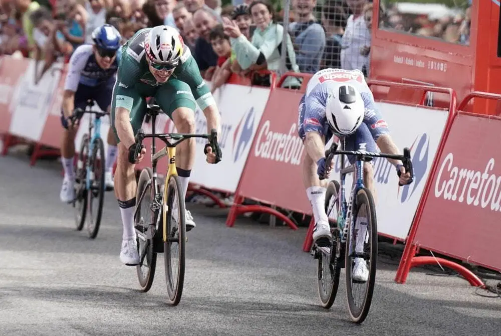 Seconda volata vincente per Kaden nella quattordicesima tappa, sesta in carriera in Spagna. Wout secondo, brivido Primoz Roglic per una foratura ma la classifica resta invariata