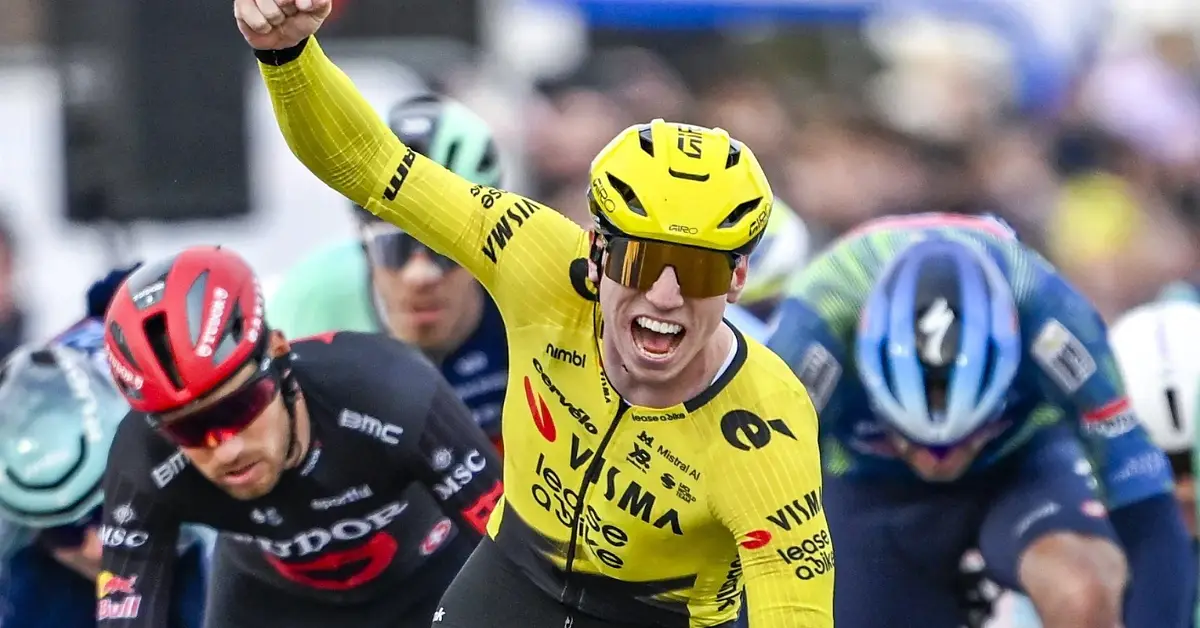 Una vittoria - per quanto prestigiosa - non basta per cancellare le tante, troppe batoste del passato. Tuttavia, la Visma-Lease a Bike aveva bisogno di un buon successo per inaugurare la stagione delle classiche. In contumacia di Wout van Aert - che dovremmo ritrovare martedì al GP Le Samyn - Matthew Brennan era l'uomo di riferimento dei gialloneri sulle strade della Kuurne-Bruxelles-Kuurne. In fondo a una giornata pressoché impeccabile, il 20enne britannico - che pure era ancora malconcio dopo la caduta alla Omloop Nieuwsblad - ha finalizzato il lavoro dei compagni di squadra, dominando la volata (relativamente ristretta) che ha deciso la corsa fiamminga. Scortato da Christophe Laporte, Brennan ha preceduto nettamente la coppia della Tudor formata da Luca Mozzato e Matteo Trentin. L'ottimo risultato dei due corridori italiani compensa il rammarico per il passo falso di Jonathan Milan, uscito dai giochi a poco più di 80 chilometri dall'arrivo, quando la Decathlon CMA CGM ha dettato la prima selezione in gruppo. Ad ogni modo, il friulano non è l'unico deluso di giornata: l'andatura sostenuta nella parte centrale della corsa ha decimato la platea delle ruote veloci in corsa per la vittoria. Oltre a Milan, infatti, anche i vari De Lie, Girmay, Groenewegen e Magnier sono rimasti anzitempo fuori dai giochi. In ombra anche Tobias Lund Andresen - al di là del 7° posto finale - e Jasper Philipsen, rimasto senza forze nel finale.